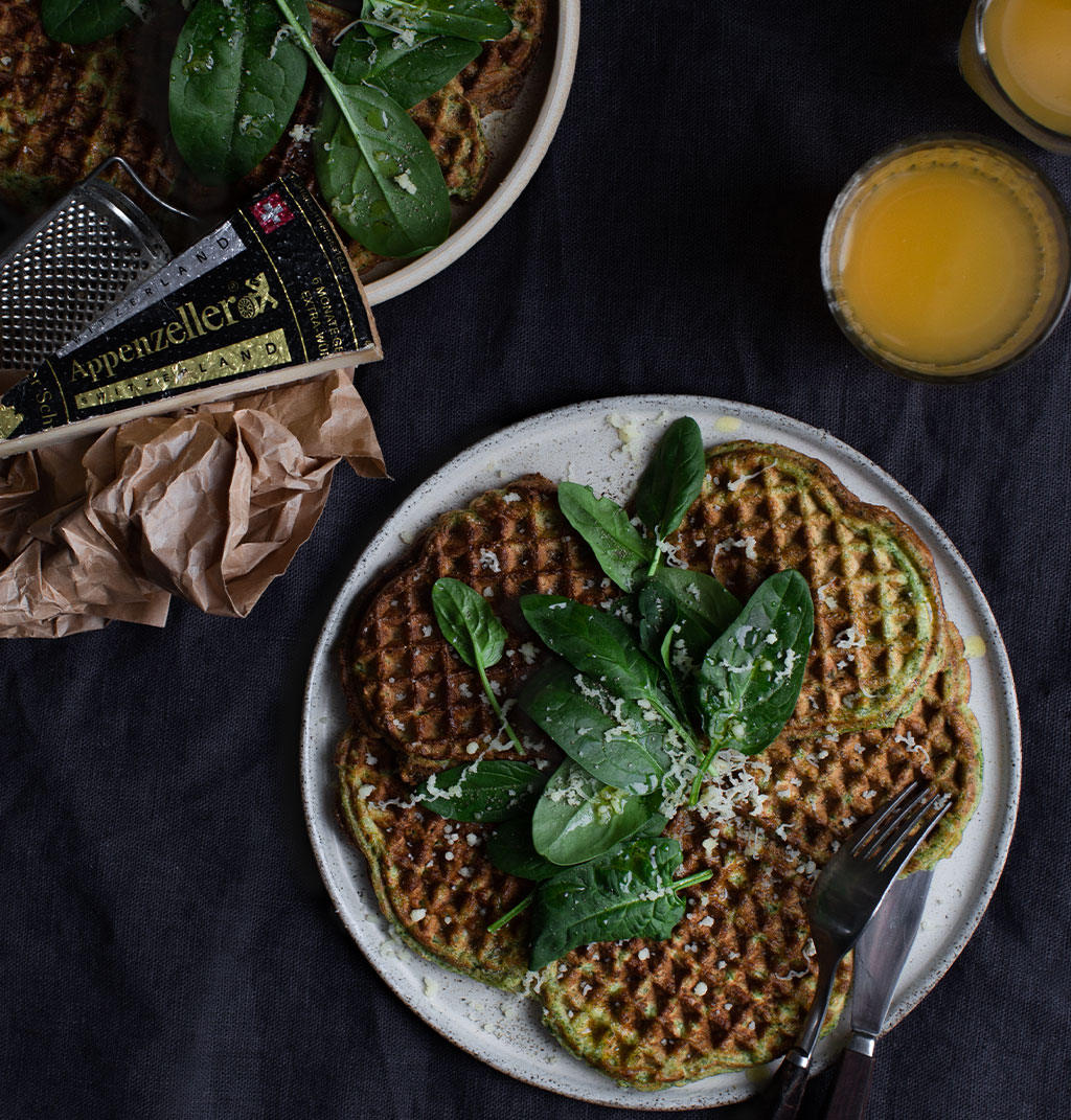 Server med babyspinat og dryss Appenzeller® på toppen.